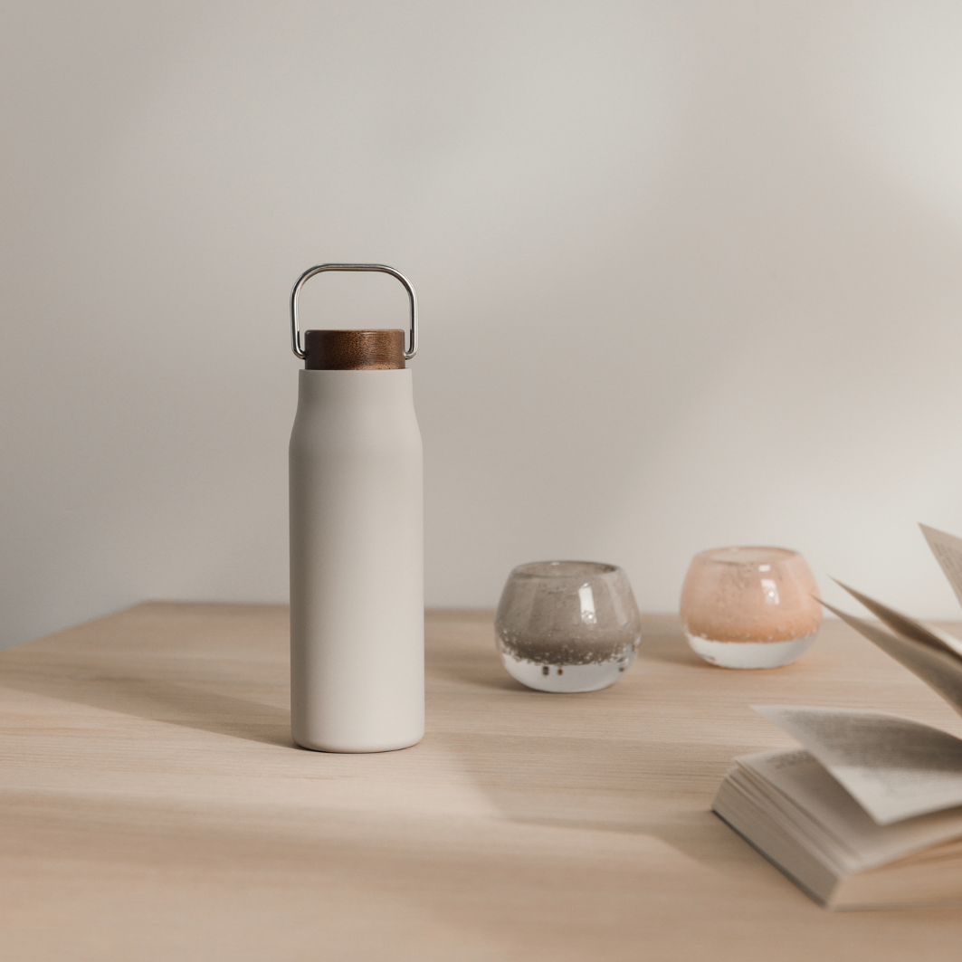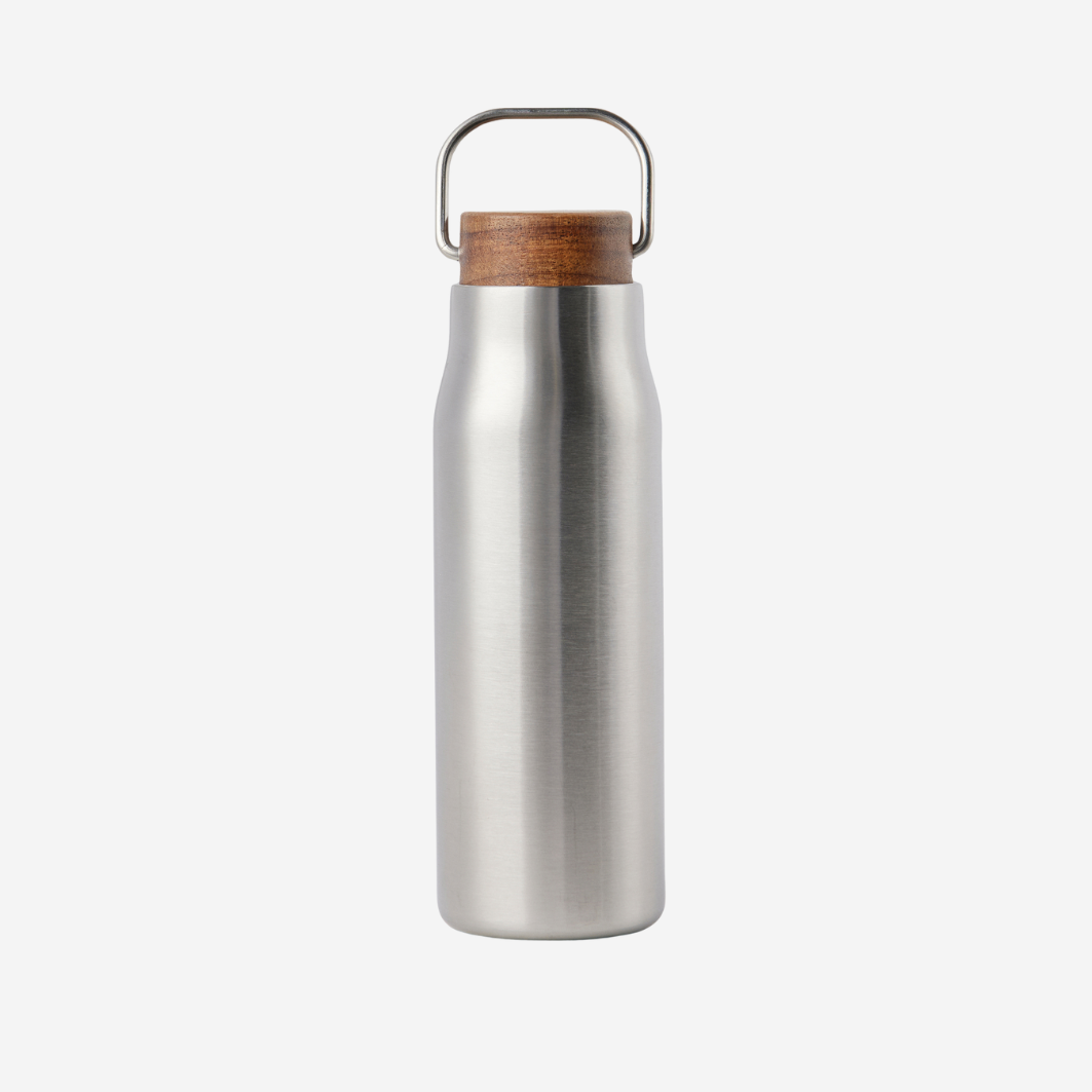 La botella al vacío reciclada Ciro RCS es una botella termo de diseño elegante y funcional. La botella tiene una tapa de madera de acacia con un lazo de metal, lo que hace que sea fácil de llevar contigo cuando estás de viaje. La madera de acacia es un material orgánico donde las variaciones de tonalidad y color son características naturales. La construcción al vacío con doble pared en acero inoxidable reciclado asegura que la botella mantenga intacta la temperatura durante mucho tiempo, tanto de bebidas frías como calientes. Certificada por RCS (Recycled Claim Standard), la certificación RSC garantiza que toda la cadena de suministro de materiales reciclados está certificada. El contenido total reciclado se basa en el peso total del producto. Este producto contiene 69% de acero inoxidable reciclado con certificación RSC. La botella es fácil de limpiar y sólo debe limpiarse a mano. Incluye embalaje kraft certificado FSC®.