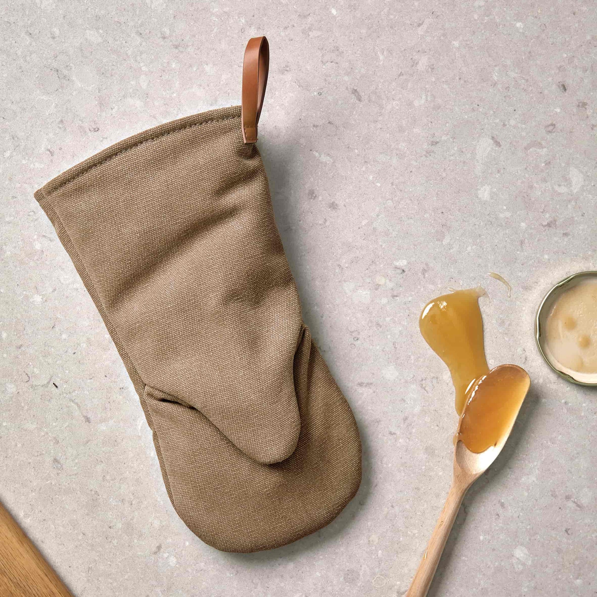 Práctico y estiloso guante de horno fabricado en lona de algodón. Generosamente acolchado para proteger sus manos cuando lleva platos calientes de la cocina a la mesa. Puedes colgar el elegante guante de horno en tu cocina con el práctico lazo cuando no lo uses, listo para cogerlo cuando estés a punto de sacar un plato caliente! Adecuado para zurdos.