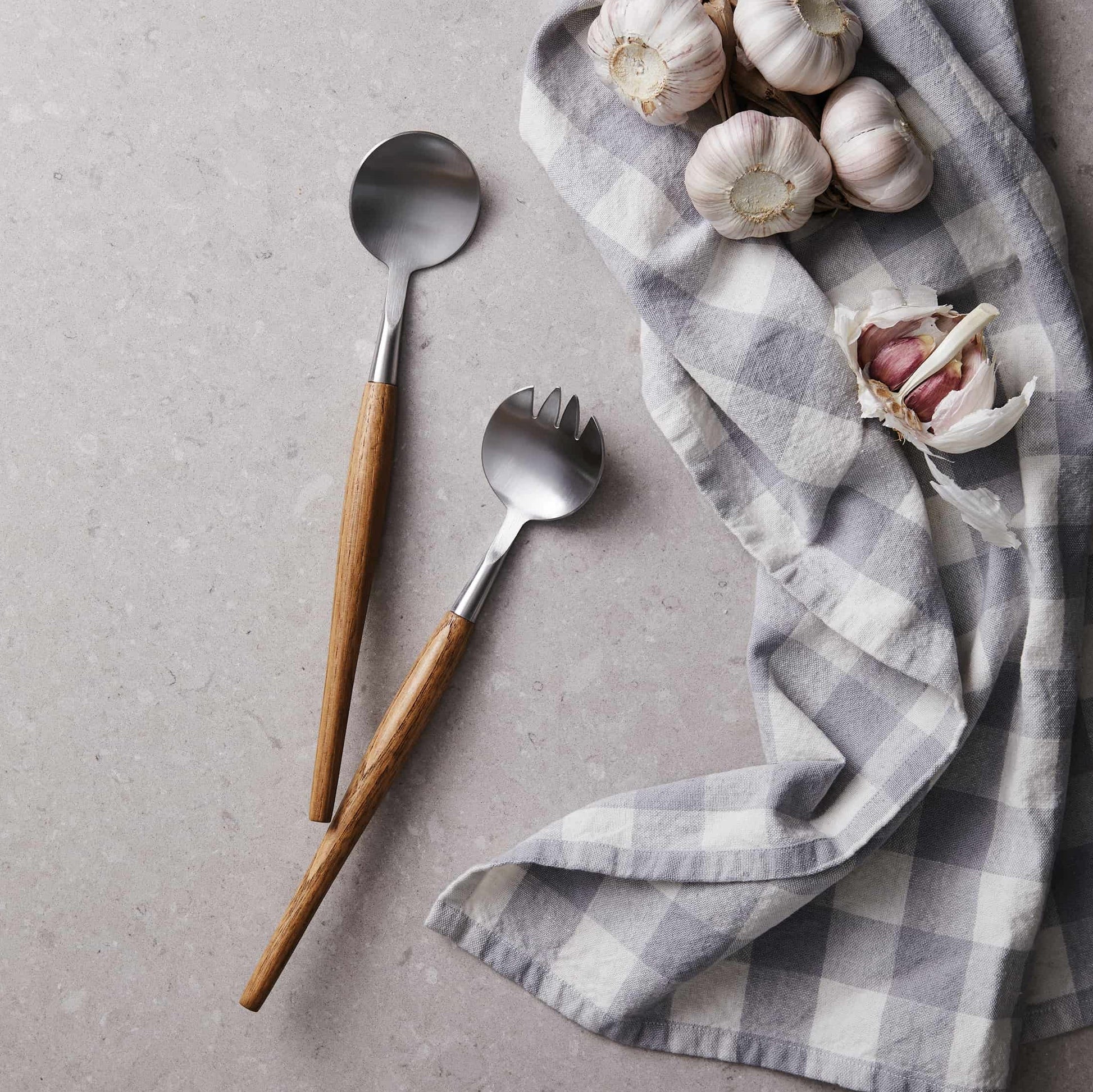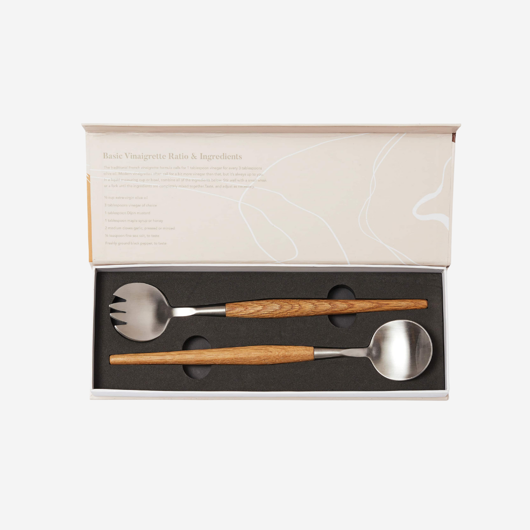 Cubiertos de acero para servir con mangos de roble. Un diseño clásico y minimalista al más puro estilo escandinavo. Los utensilios son perfectos para cenas y comidas especiales en casa. Presentados en una exclusiva caja de regalo.