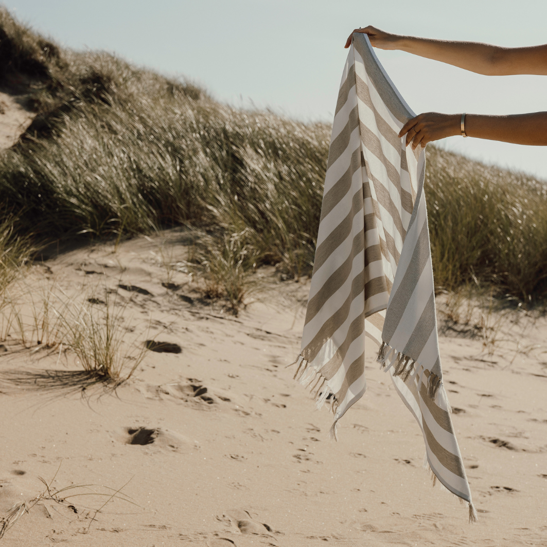 Fabricada con una mezcla ligera y aireada de 200 g/m², combina la comodidad del algodón con los beneficios del secado rápido del poliéster. Con unas medidas de 80 x 180 cm, es perfecta para la playa o la piscina. Certificada por GRS (Global Recycled Standard), la certificación GRS garantiza que toda la cadena de suministro de los materiales reciclados está certificada. El contenido reciclado total se basa en el peso total del producto. Este producto contiene un 68% de algodón reciclado certificado por GRS y un 29% de poliéster reciclado certificado por GRS.